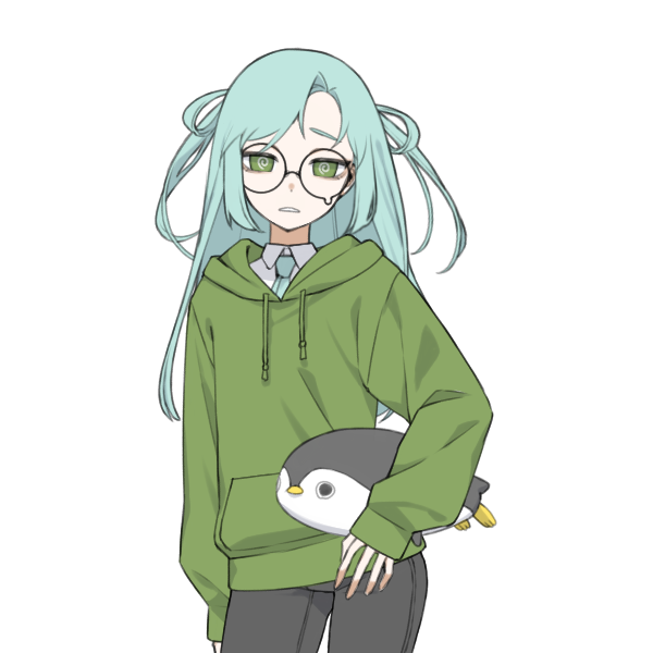 目立つ水色の髪に緑色の目をしている。