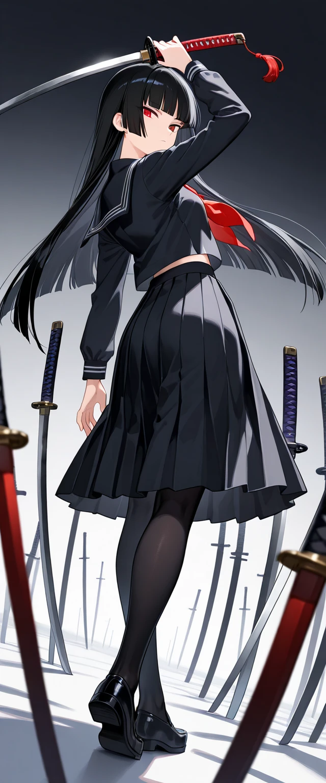 艶やかな漆黒の長髪を端正に切り揃え、シックな黒いセーラー服に身を包む高校生。