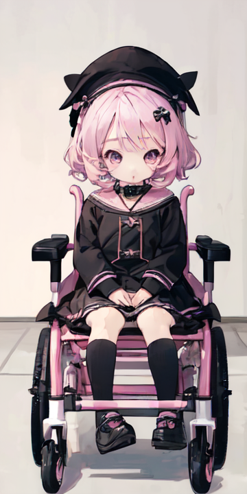 ・ピンク髪 ・紫目 ・紫と黒のワンピース ・超低身長 ・ロリ体型 ・下半身不随 ・車椅子