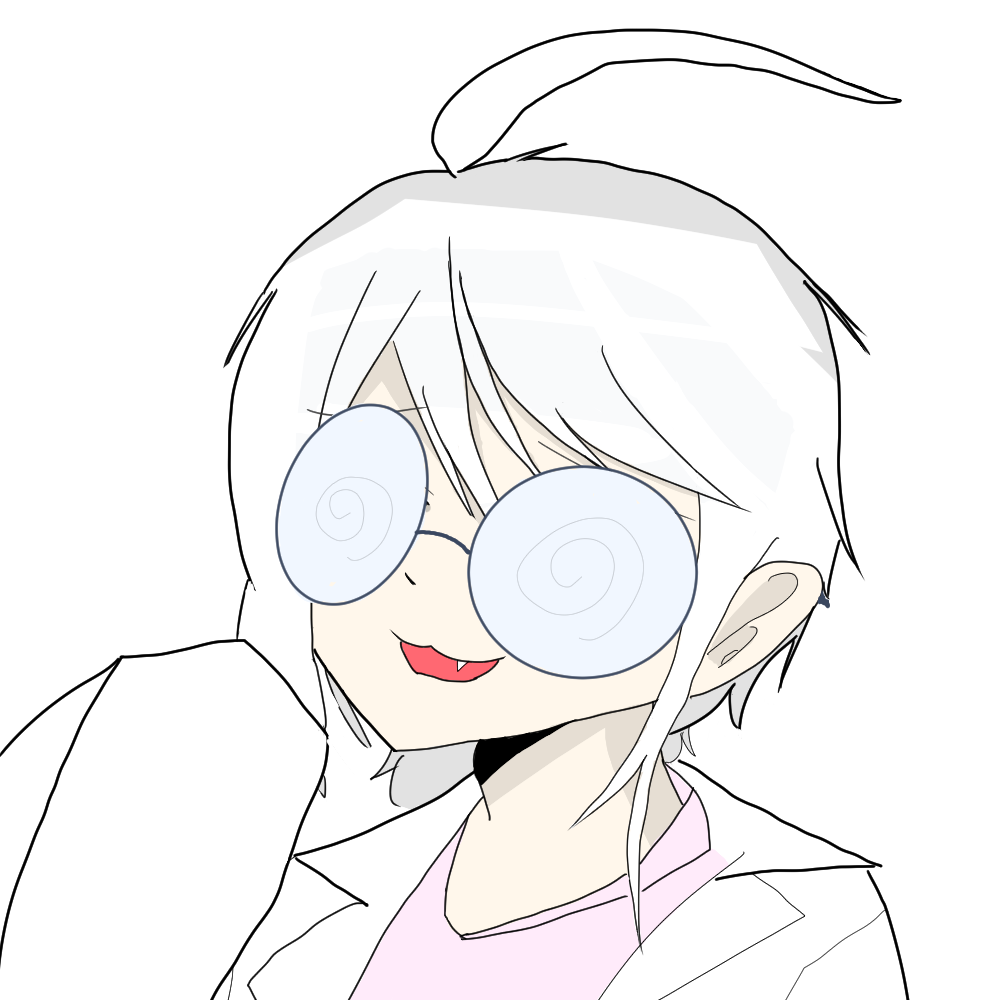 ぐるぐる眼鏡が特徴の人物。
