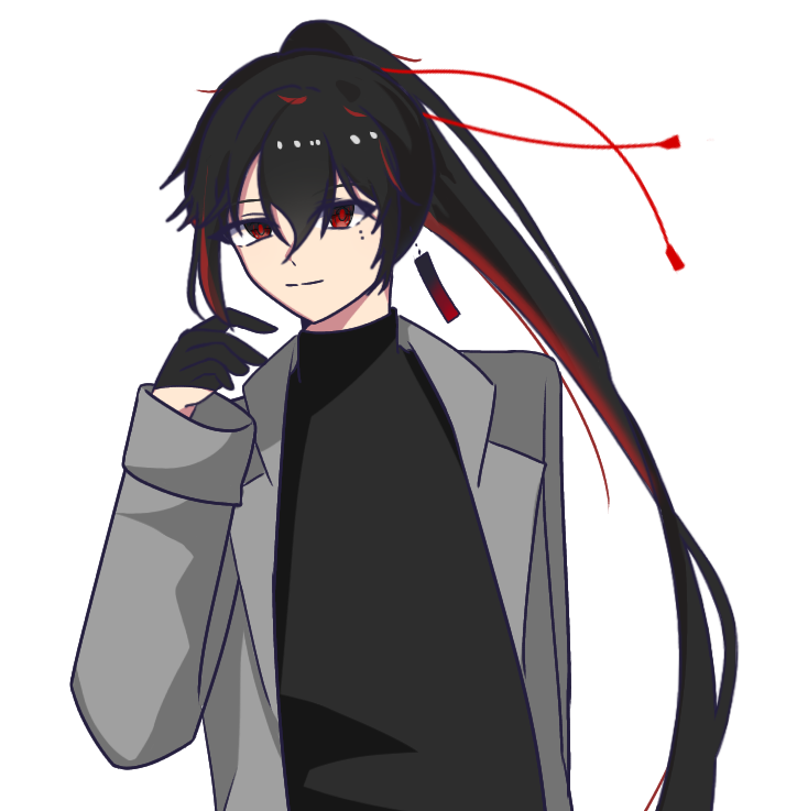 髪 黒・赤メッシュ
