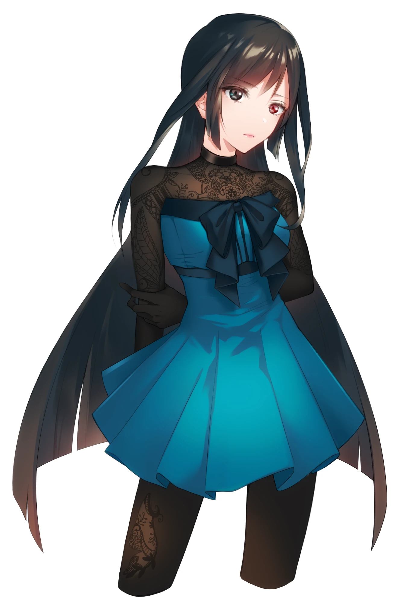 髪型は髪を腰まで伸ばしたロングヘアー、左目を前髪で隠している。(片目を隠しているのは、家族からの言葉を引きずっている為)