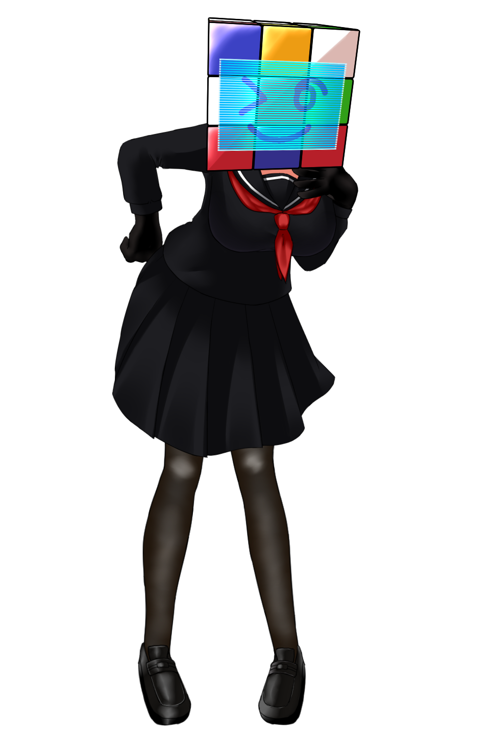 頭部がルービックキューブに変化し胴体と切り離されている以外は、平均よりも低い身長とそれなりに発育の良い体格をした少女。