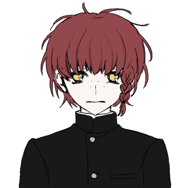 赤い癖毛の内気な少年。