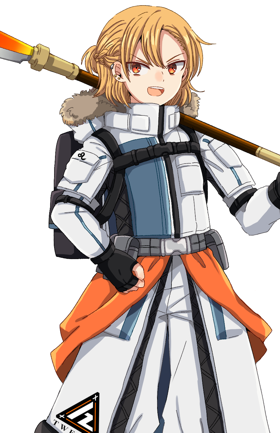 雷のような形の橙色に光る刃が特徴の薙刀。