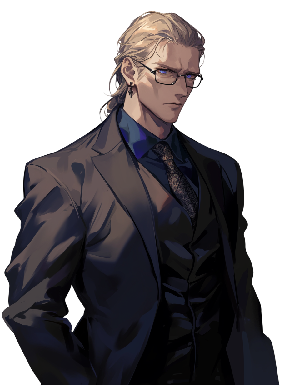 金髪オールバックで眼鏡。実年齢よりも少々老け顔。