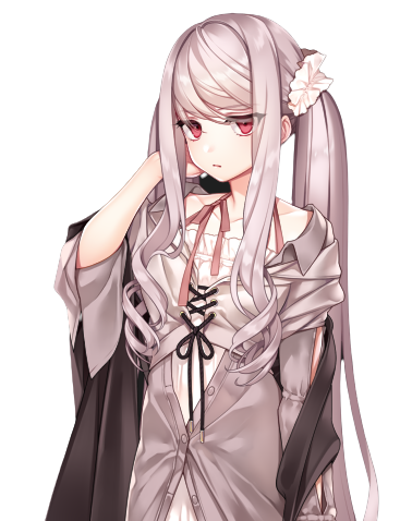 髪 さらさらとした髪質の桃色の長髪を二つ結びで流している。