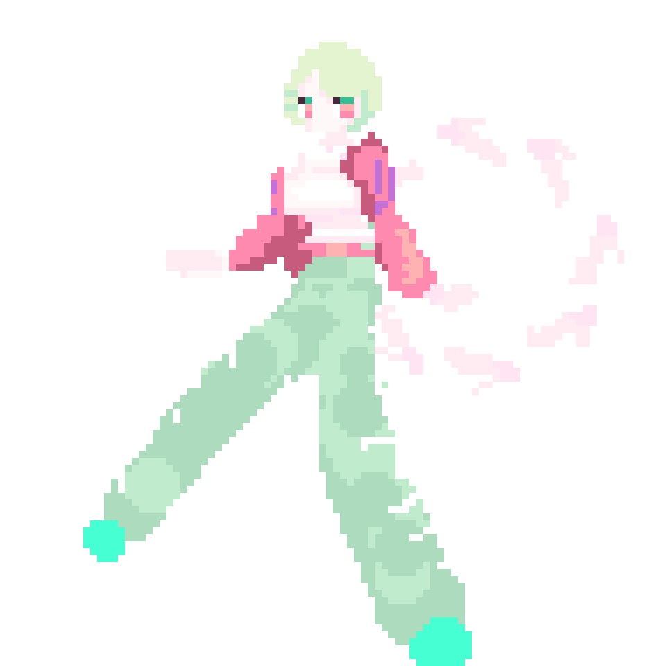 髪の色・瞳の色:蛍光グリーン・桃色