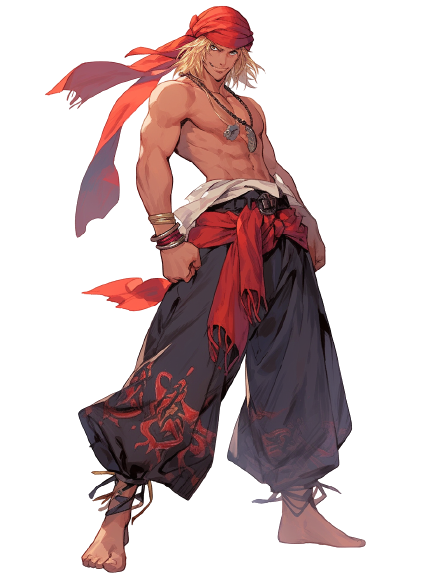 めっちゃ喧嘩っ早く、ことあるごとに喧嘩ばかりに明け暮れていた彼だったが、船長であるベルテゾールに一目ぼれに近い憧れをいだき、何度も何度も頼み込んだ結果気に入られ海賊団に入った男。