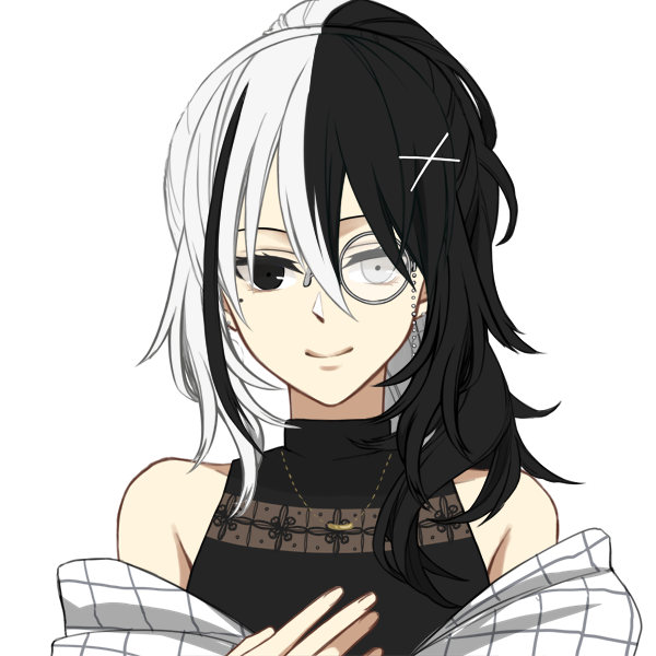 黒と白のツートンカラーの髪に黒と銀のオッドアイを持つ女性