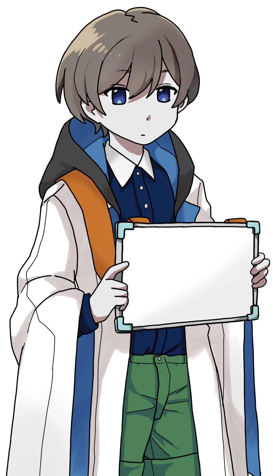 首からホワイトボードを下げ、そこに単語や顔文字を書いて周りと意思疎通をしている。戦闘の際には言葉を発しているようだが、声は聞こえない。