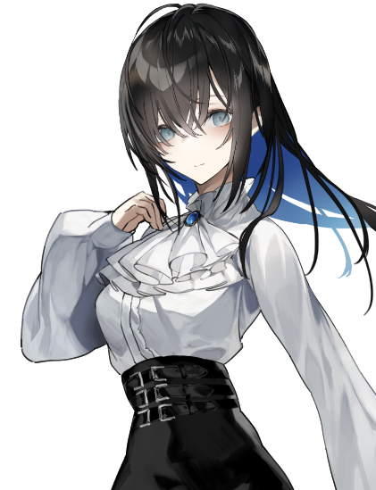 長い黒髪に薄青い瞳を持つ美女。服装はフォーマル寄りの上品なデザインが多い。一番の特徴は両手の義指。普段は目立たないように薄手の手袋をしている。