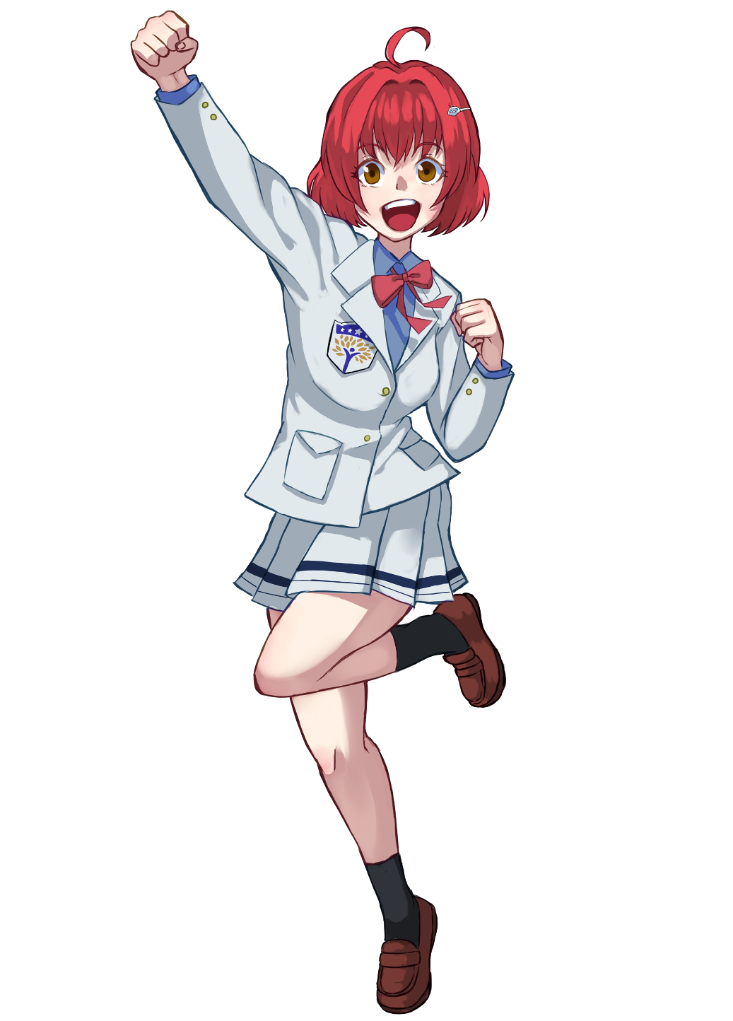 ・髪型・・・ヘアピンを付けたショートボブ。色は赤