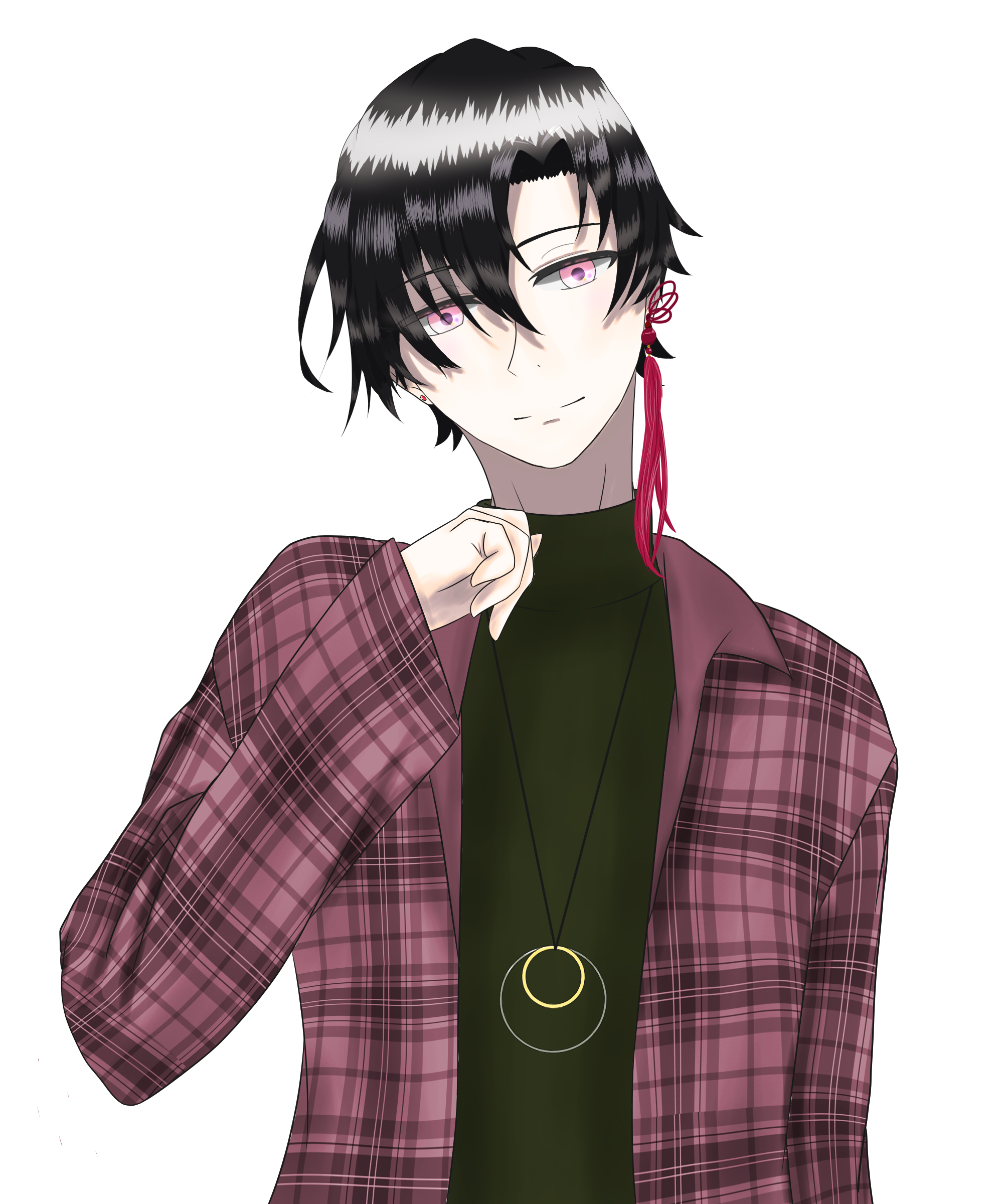 髪色:漆のような黒 瞳の色:撫子色