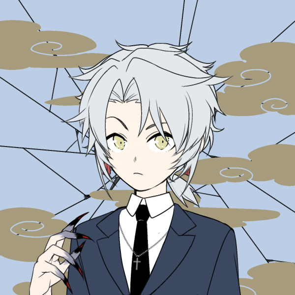元から少し黒味かかった白髪(灰色髪)に金目で、目は普段からコンタクトで黒にしている。