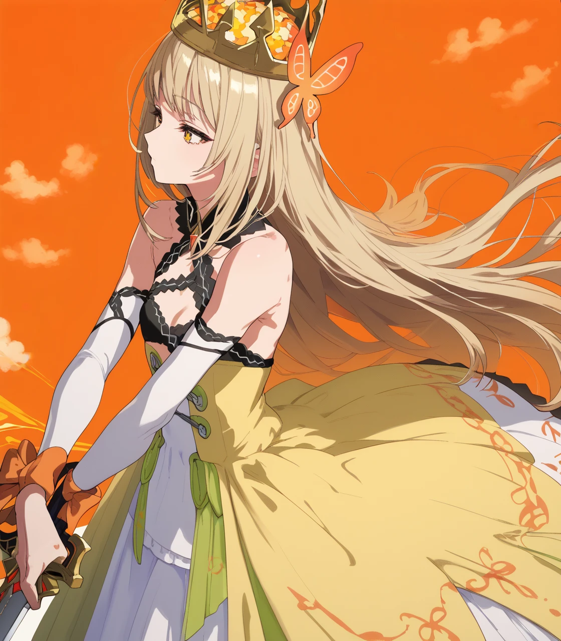 ”ガランサス”から剣を抜く際、彼女の衣装もドレス姿に変化する。白と黒のコントラストの織り成すその衣装は、光も闇もすべて背負うと決めた彼女の覚悟の象徴である。