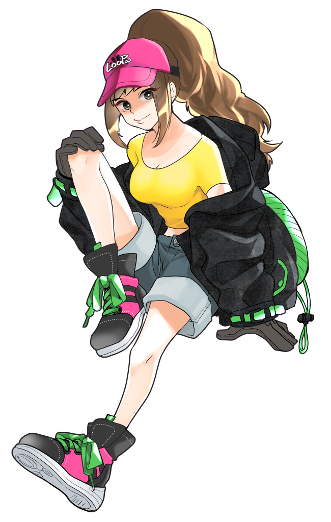 たっぷりとしたポニーテールを揺らし、愛用の電動スケートボードを携えている女性。