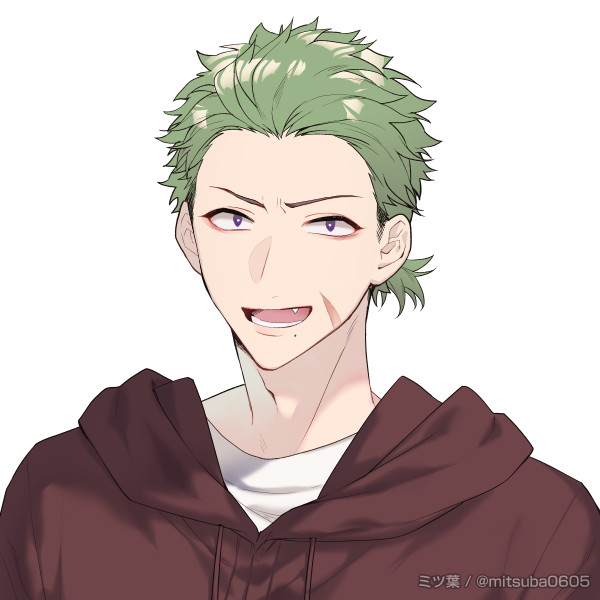 逆立った緑髪に頬の傷が特徴的な高校生。