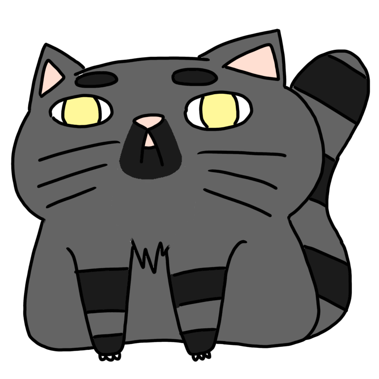 黒と灰色のぶち猫。
