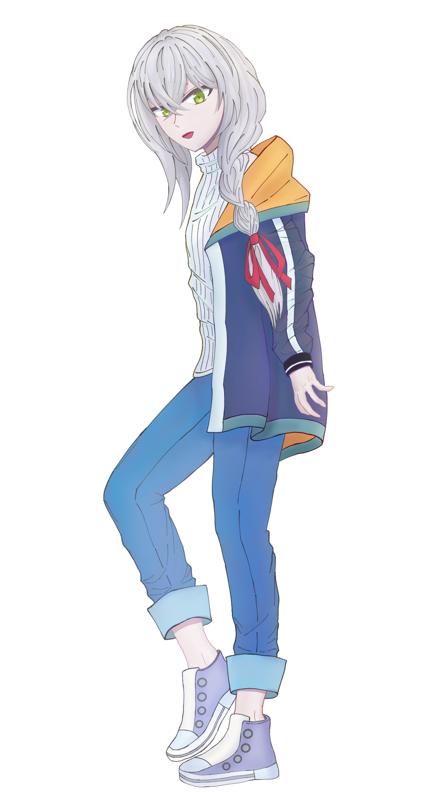 色褪せたような白髪、若葉色の瞳、中性的な顔つき。長身で細身寄りな体。