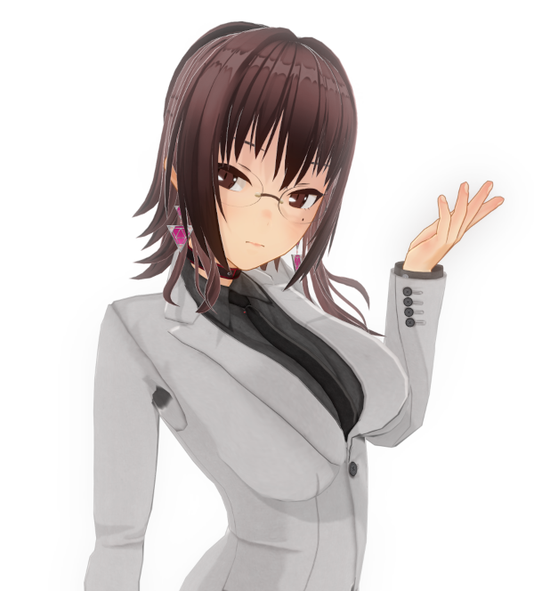 吊り気味の目と肩口で切りそろえた髪、ピシリと伸びた背筋が特徴。
