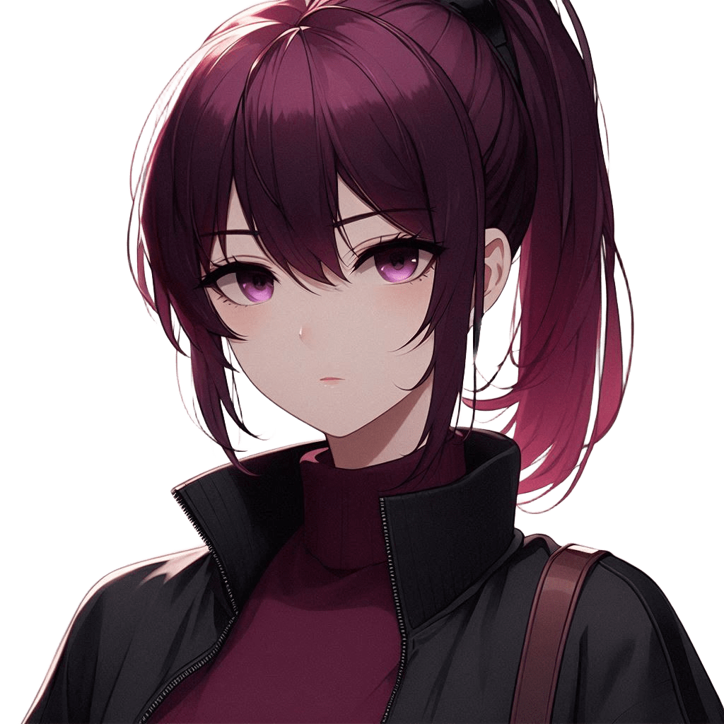 髪:ダークマゼンタのショートポニーテール
