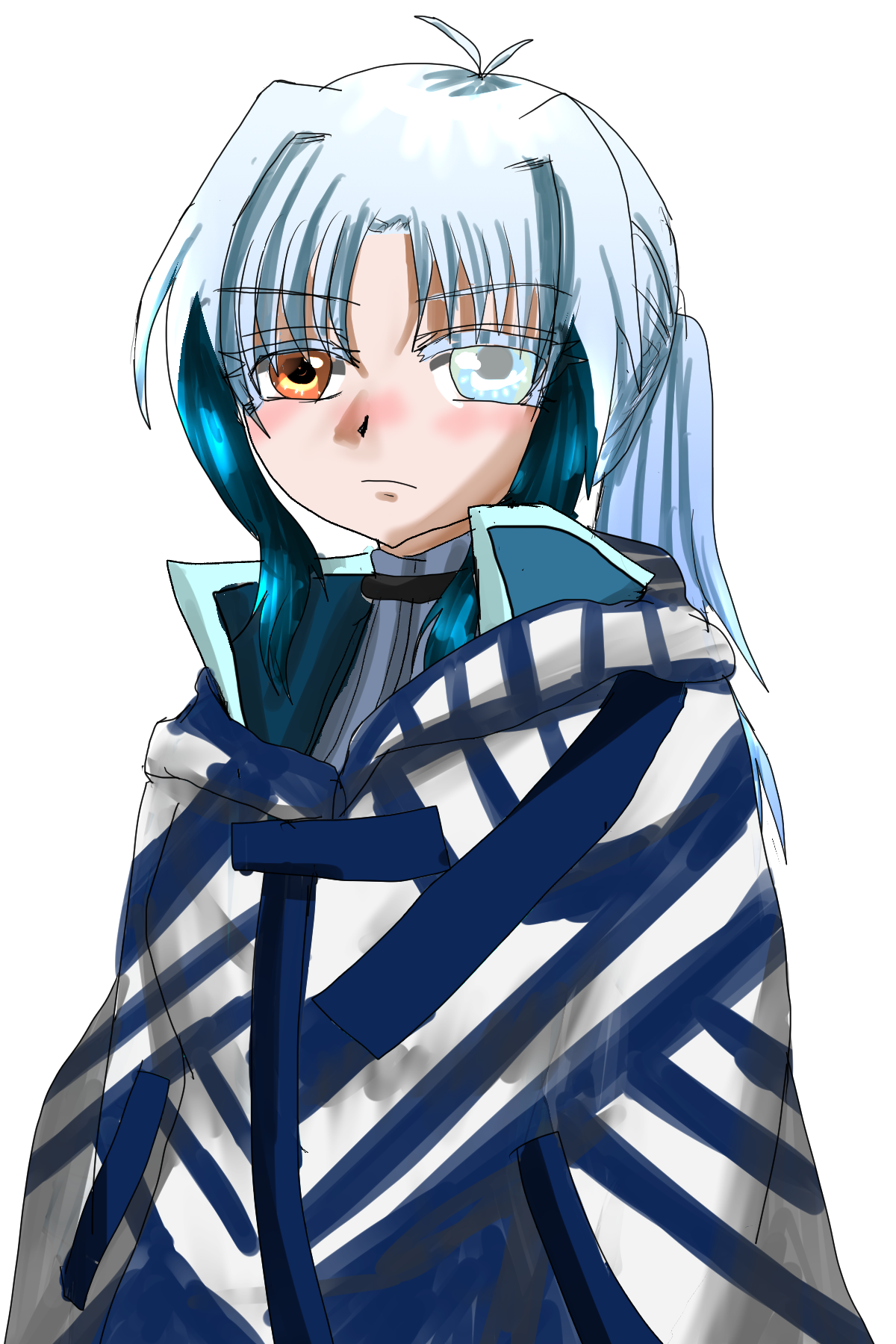 髪の色 白色+水色のメッシュ