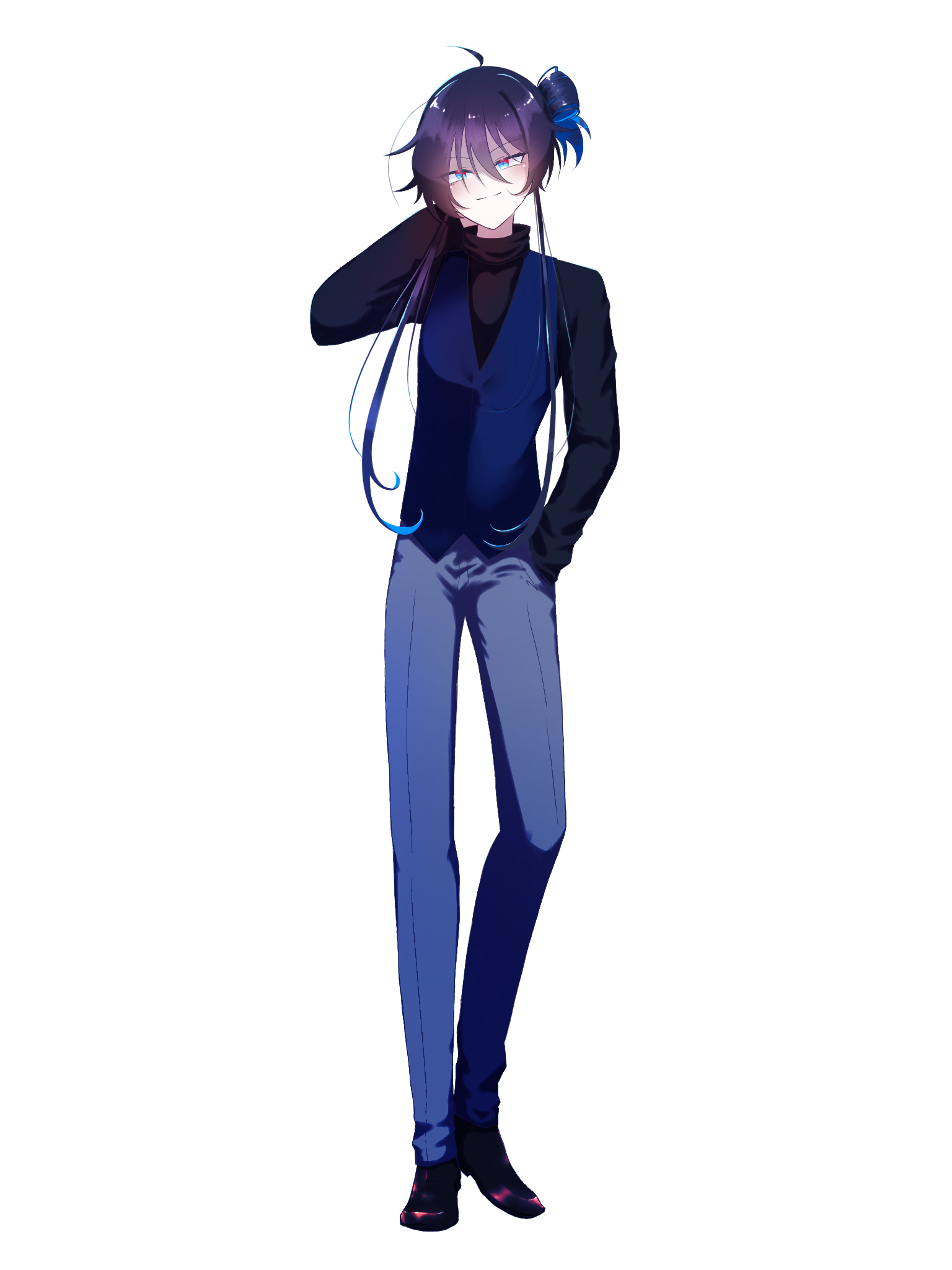 身長172cm、長く伸ばした黒髪を適当にひとまとめにした男性。うっすらと顔色が悪く愛想の良い笑顔を浮かべがち