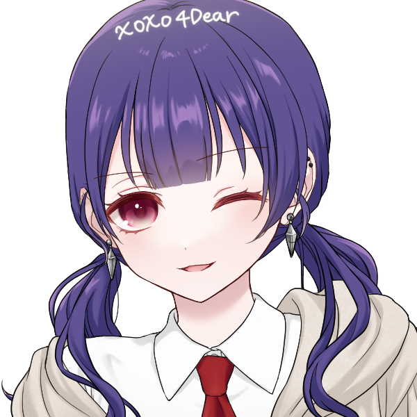 紫髪と赤い目が特徴。髪は母親、目の色は父親譲り。