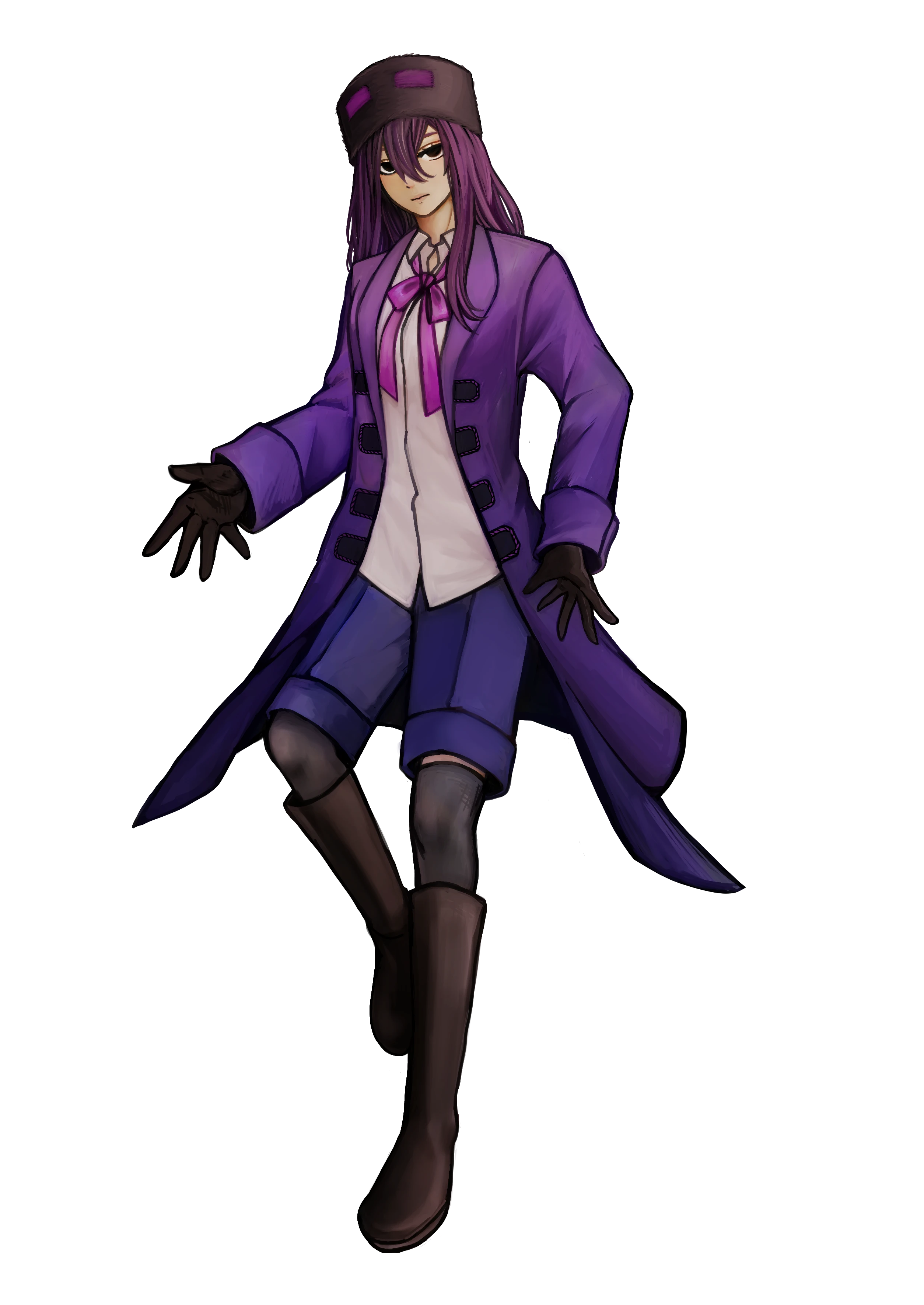 奈落の底の様な瞳に暗い紫色のコートを羽織っている