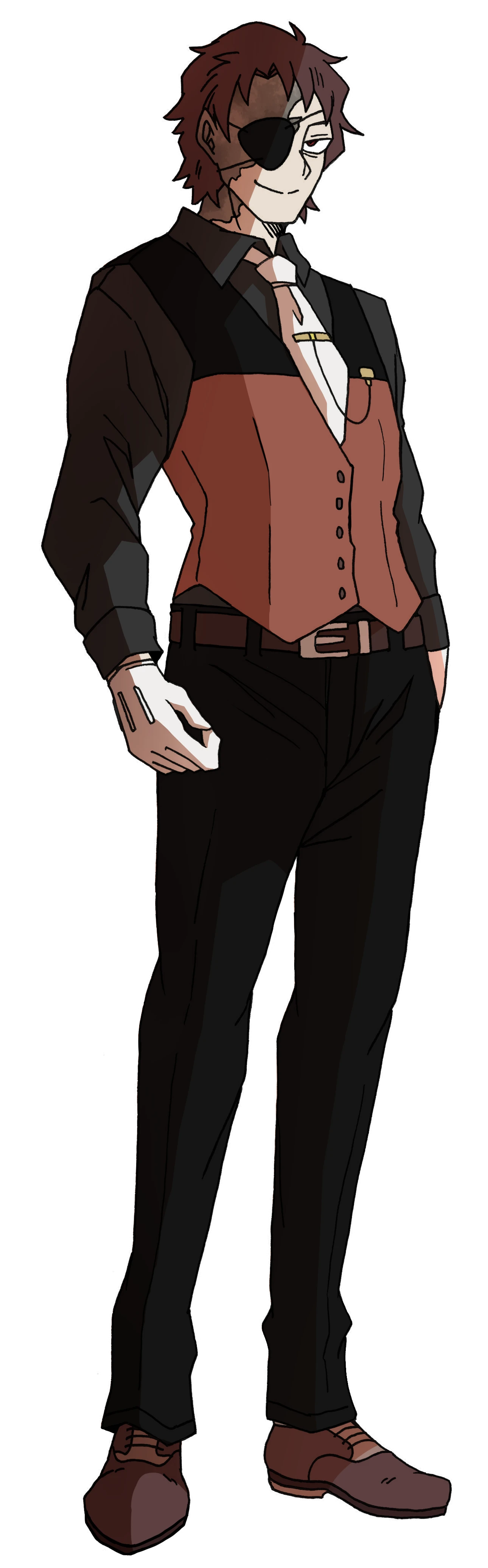 こげ茶の髪に赤眼が特徴的なアメリカ人