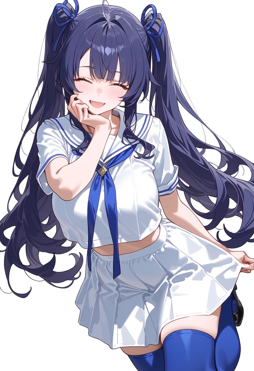 - 暗い青色。長い髪をツインテールにしている。