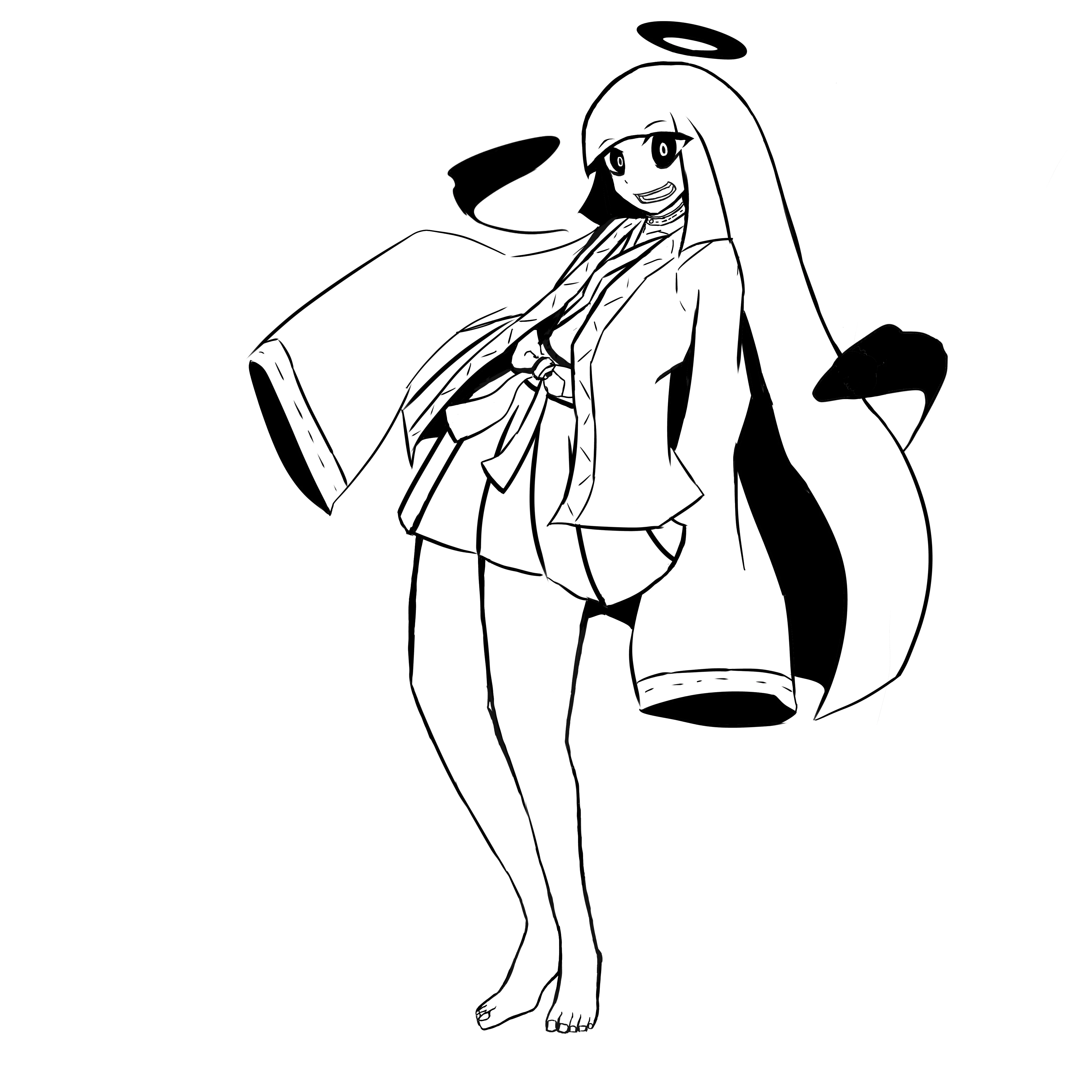 腕がない分脚を晒す。人外から見た客観的評価として「自信持っていいスペックの脚」らしい。胸は虚無。嘘か真か、爆散した。