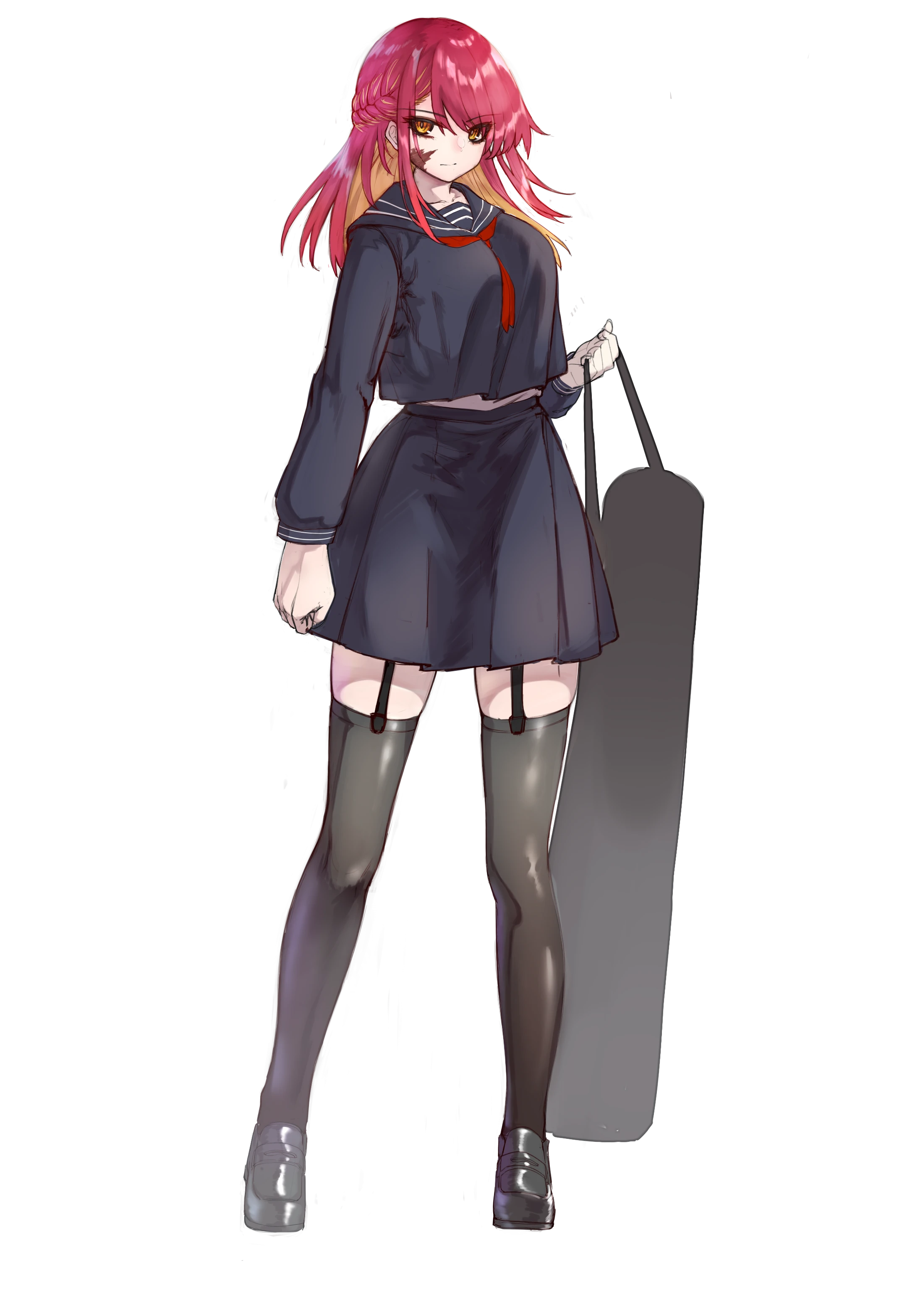鮮やかな赤色の髪と威圧的な眼が特徴的な少女。