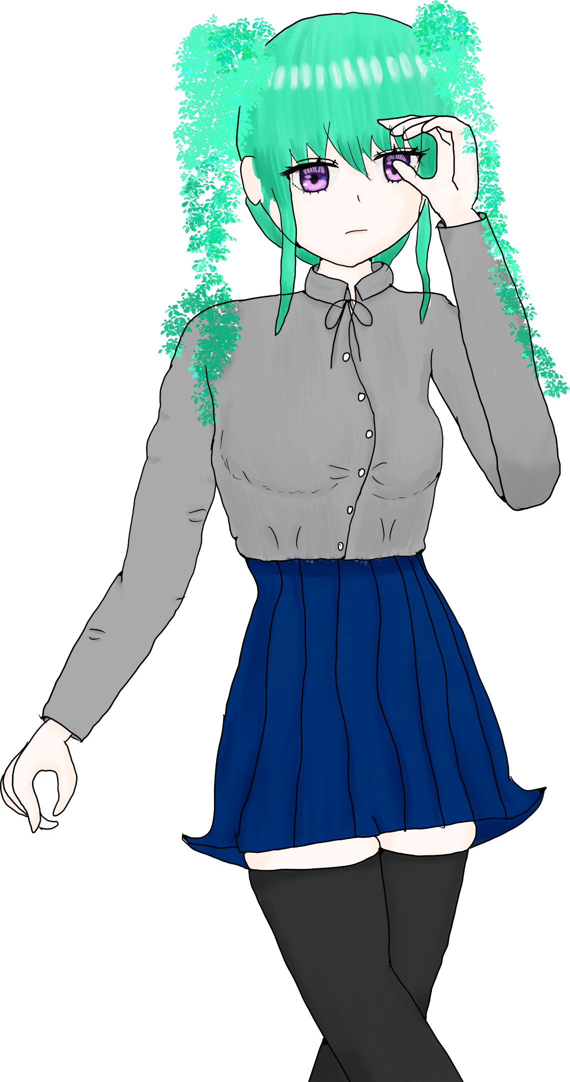緑色の髪に紫色の瞳の少女
