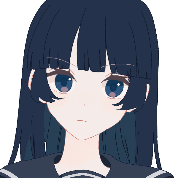 黒髪ストレートロングヘア、黒目。