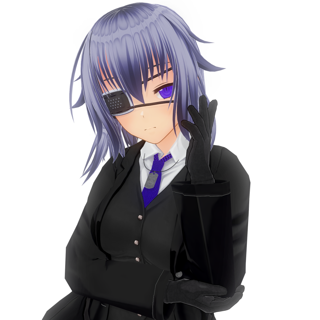 濃いめの青髪と眼帯が特徴の女子高生。左右で瞳の色が違う虹彩異色症だが、視力は左右共に1.5をキープし続けている。