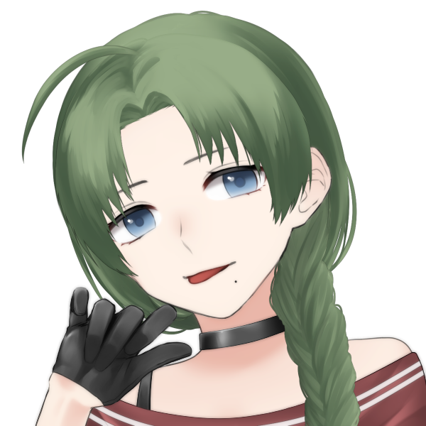 緑色の髪と青い瞳をした女性