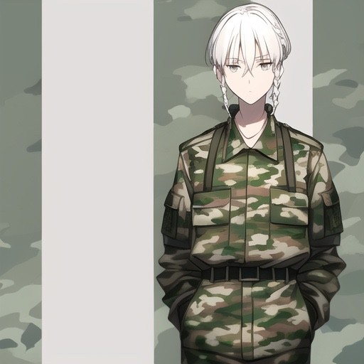 三つ編みをしている白髪の青年。幼なげな顔だが24歳で仕事の際には迷彩服を着ている。