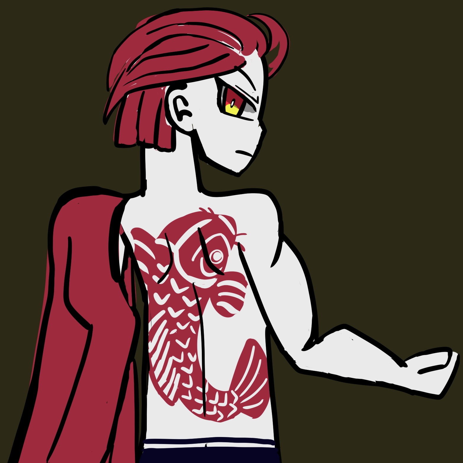 容姿:赤髪オールバック、背中には緋鯉の刺青…ではなくレネゲイドが活性した時に現れる紋様。