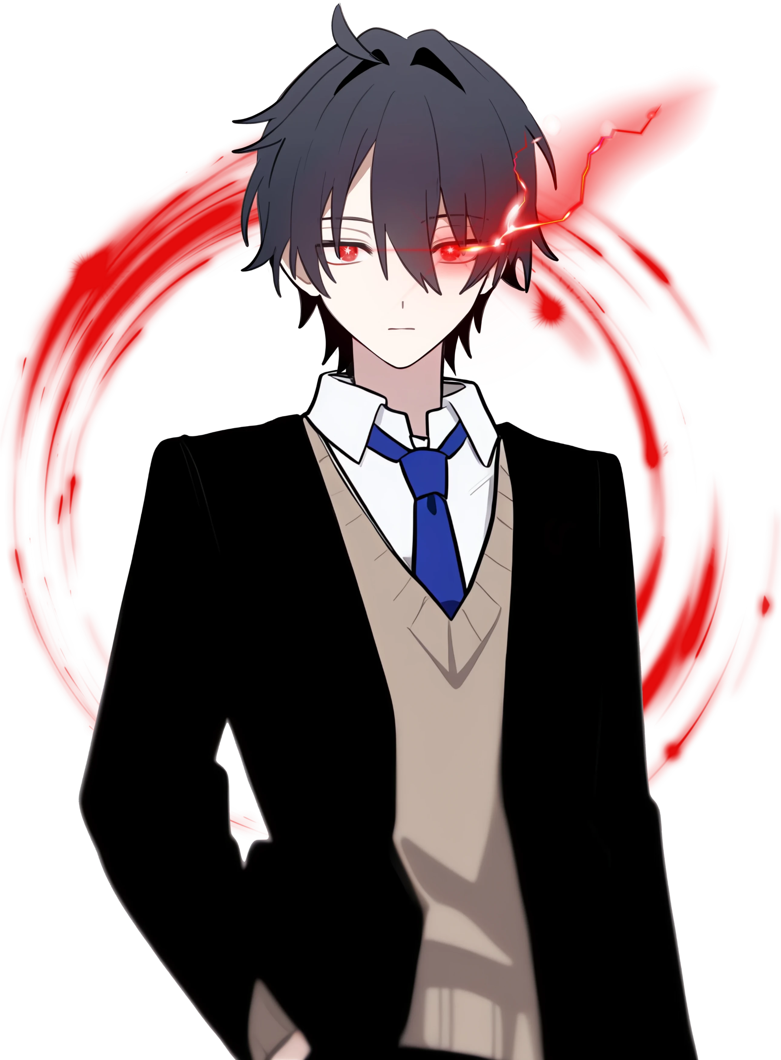 黒髪赤眼の青年。オーヴァードに目覚める前は一般的な黒い瞳をしていた。