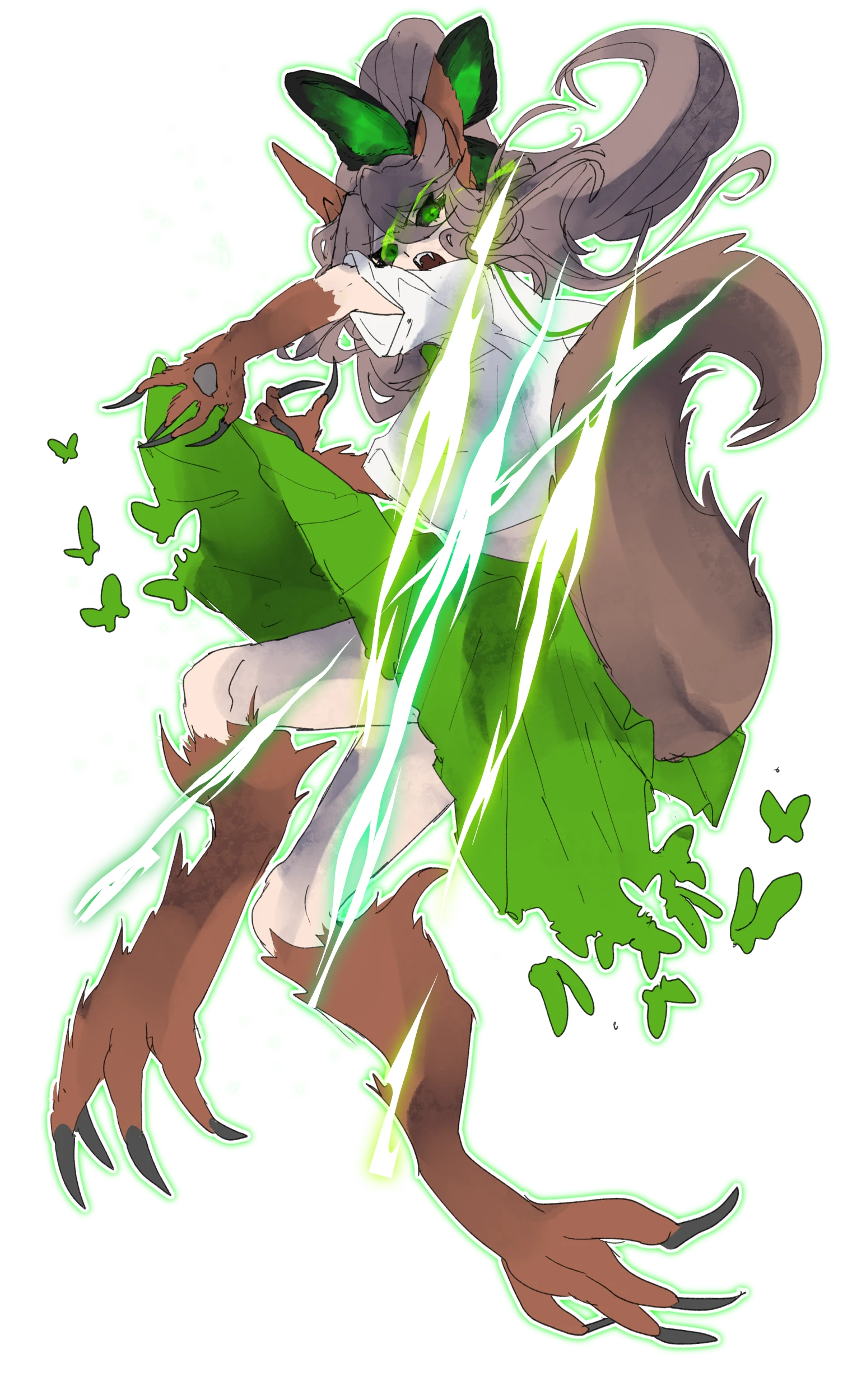 茶色のポニーテール。キュマイラになったらリスとちょうちょ要素になる。