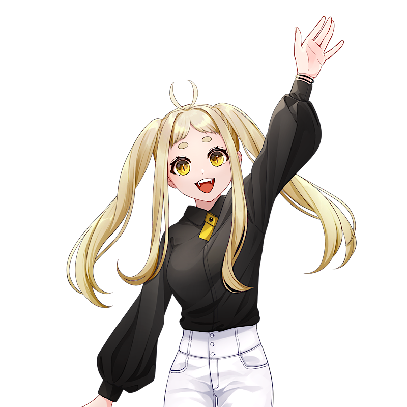 髪 くるんと時折カールする金の長髪。感情に連動するようにアホ毛が動く。