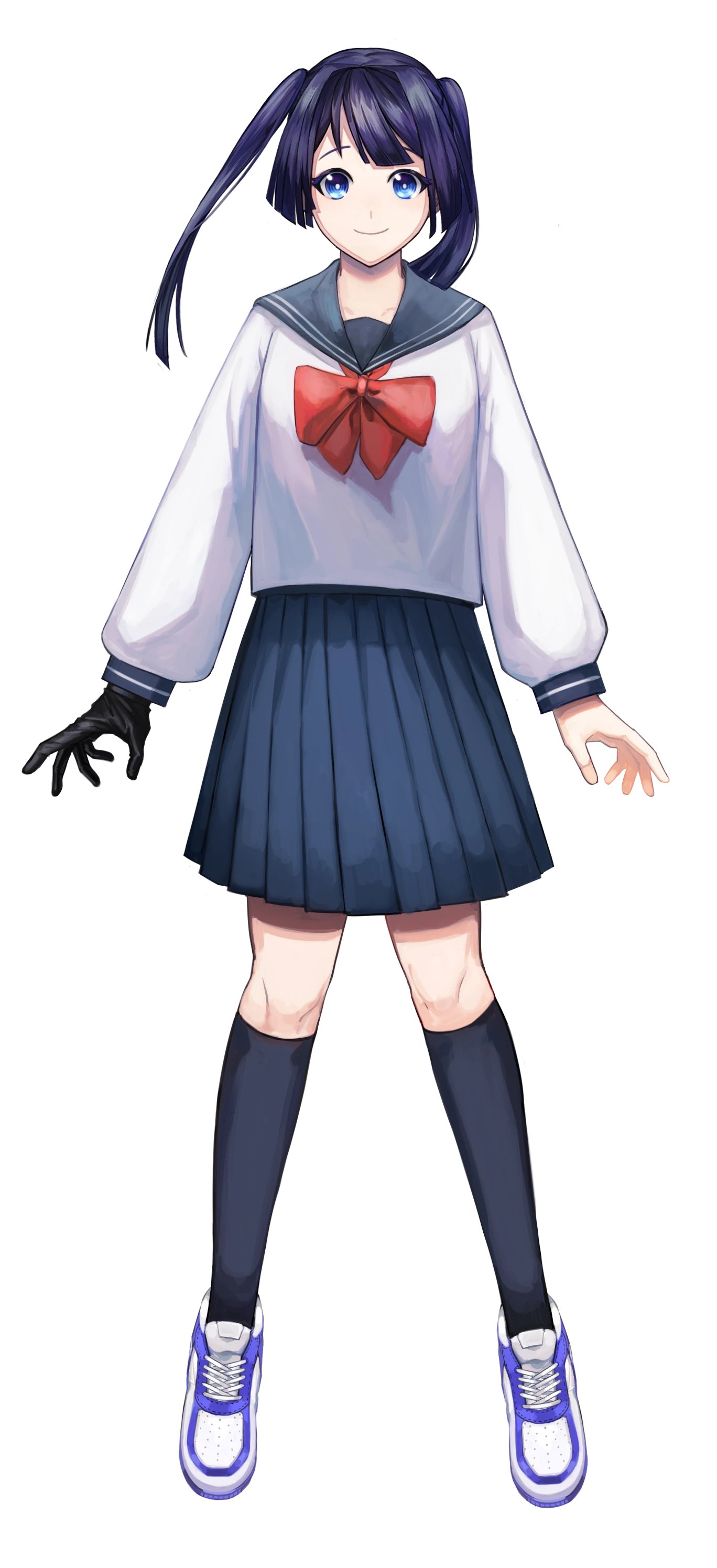濡羽色の髪を2つに結んだ深い青目の女子高校生。