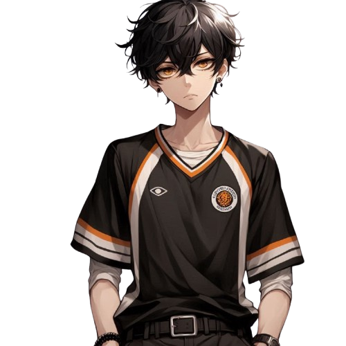 跳ねた黒髪に金の目が特徴的な少年。