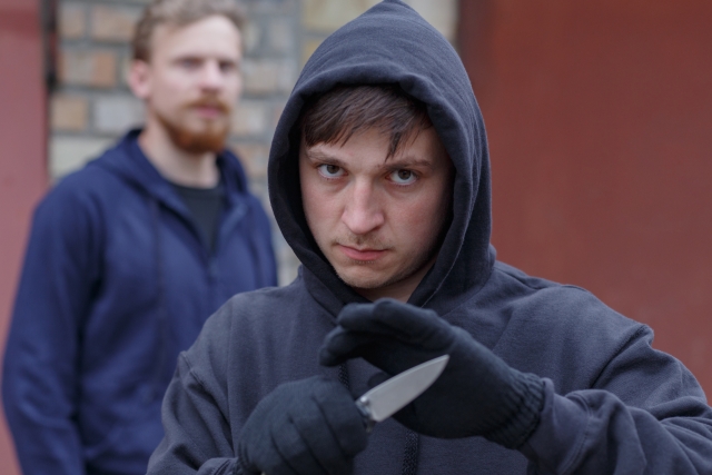 ナイフを二つ投げる。