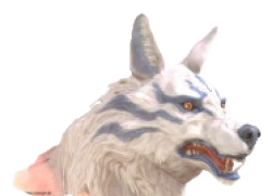 真っ白な体躯に青の隈取が浮かぶニホンオオカミ。その毛並みは中々のもの。また、ニホンオオカミとしてはかなり巨大な方。