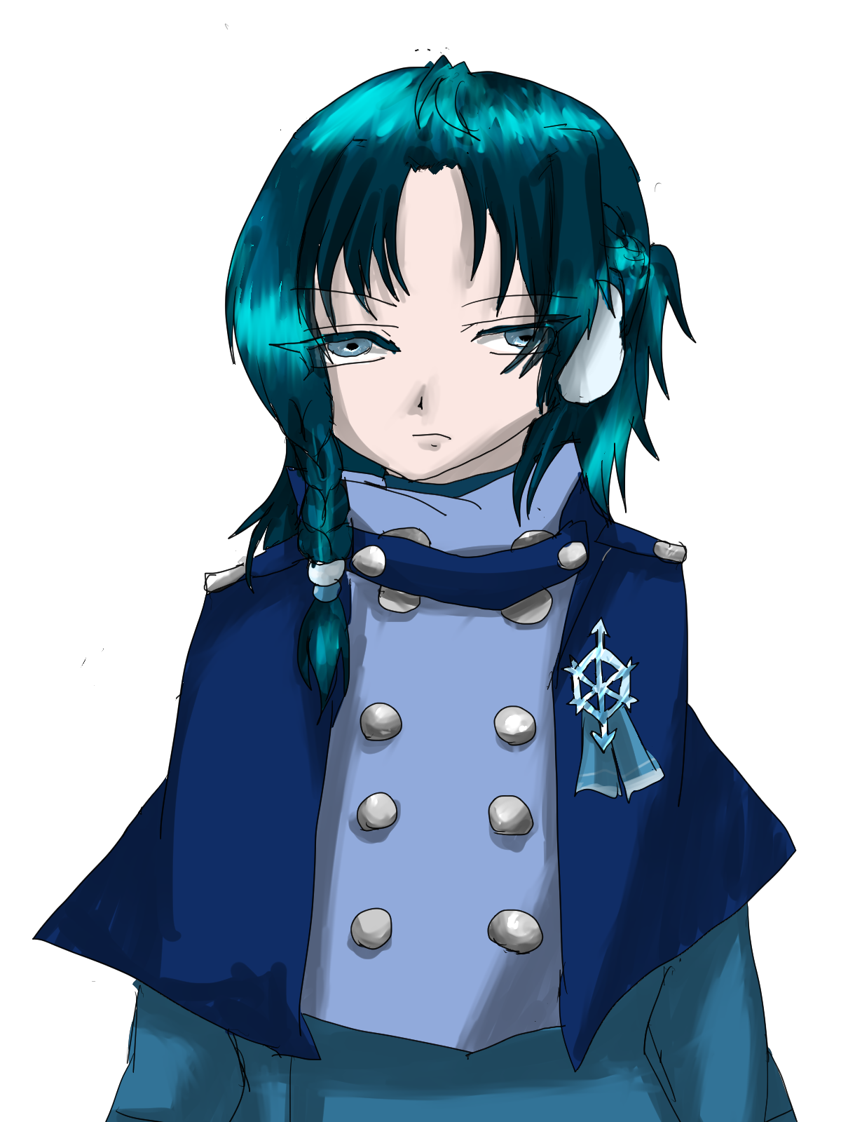 髪の色 白色+水色のメッシュ