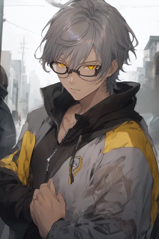 外見特徴:暗灰白の短髪、凄まじく目つきの悪い黄の瞳、印象を緩和する為の眼鏡