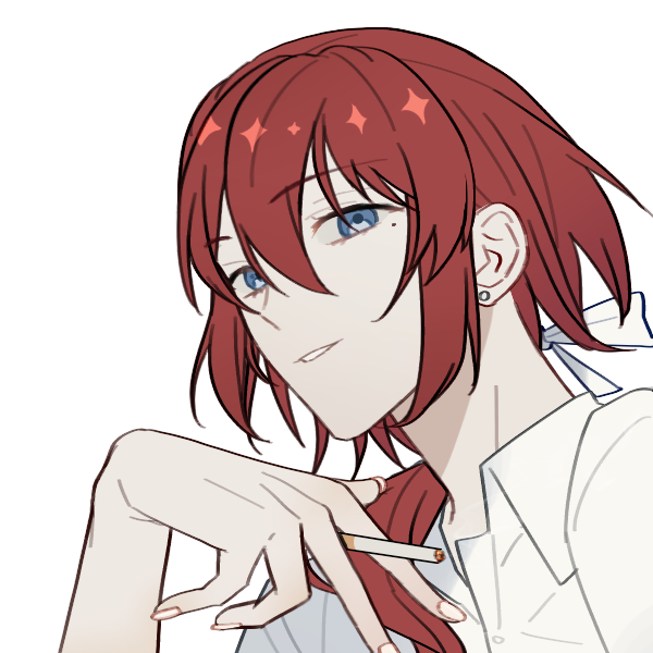 火のように赤い髪と海のような青い瞳を持つ女性、ミステリアス美人。